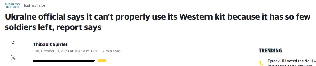 But the dreadful article goes on, confessing that the lack of manpower has become so dire for the AFU that even if all the newfangled weapons from the West were to be delivered, Ukraine may no longer even have the men to use them: