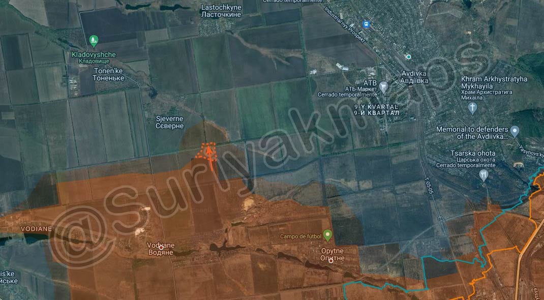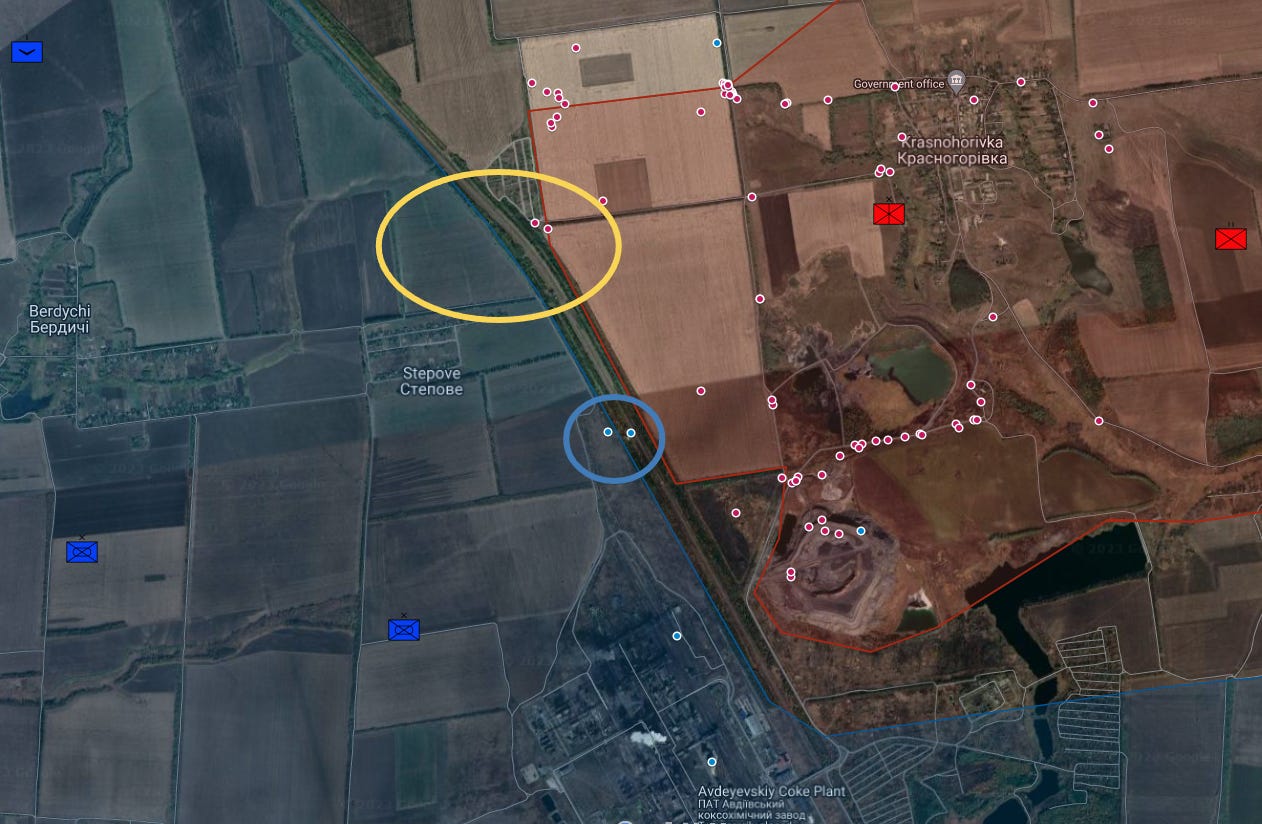 Seguing to Avdeevka in general, there are now confirmations from the Ukrainian side that Russia has in fact taken the area south of the Slag Heap and is beginning to storm the Coke Plant. But also some reports even state Russia is now operating west of the Stepove railway and gaining ground there: