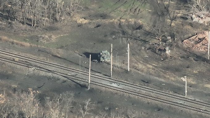Another destroyed Bradley was even spotted right on the tracks at 48.1906, 37.69704.