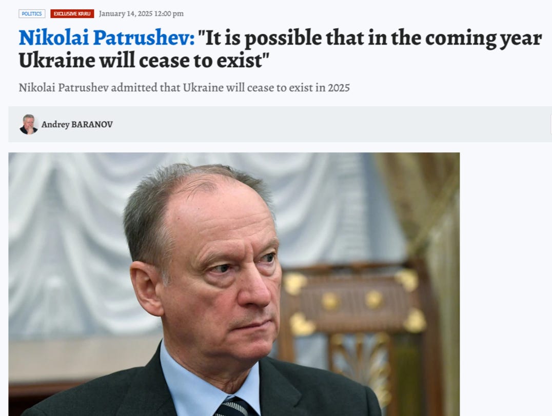 That’s not to mention Patrushev’s new interview wherein he expresses his learned view that Ukraine may “cease to exist” this year: