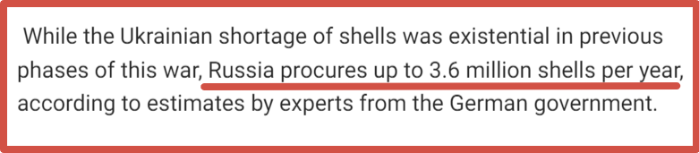 Freuding also states, by the way, that Russia now builds 3,000 UMPK glide bombs per month, and ‘procures’ 3.7M artillery shells per year: