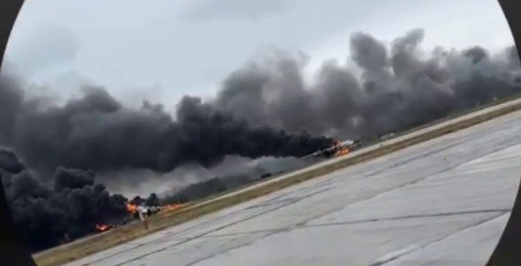 From what I’ve seen of the footage, only one looked to be potentially totally destroyed, with others merely suffering fires exaggerated by the heavy smoke of burning aviation fuel. Other videos show transport craft burning, which are mistaken for Tu-95s. For instance, here is said to be the Antonov AN-12BK burning: