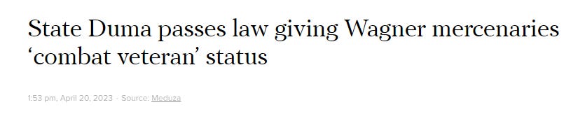 And a general greater integration is happening between PMCs and Russian armed forces proper, as Putin just decreed that all PMC and volunteer groups will be eligible for ‘veteran’ status equivalent to that of full Russian army combat troops.