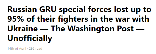 Just to give an example of this, it’s now accepted as gospel that Russia’s opening battles around Bucha, Irpin, Gostomel, etc., saw the VDV Airborne incur “massive” losses, all because of one or two deliberately misleading photos, utilizing perspective tricks, of a Bucha street which appear to show a huge amount of destroyed VDV BMDs and BMPs. It’s now common to see Western ‘analysts’ claim that the VDV lost thousands of men, or 70-90% of their forces, etc., like the laughable recent figure that Russia lost 95% of its GRU forces:
