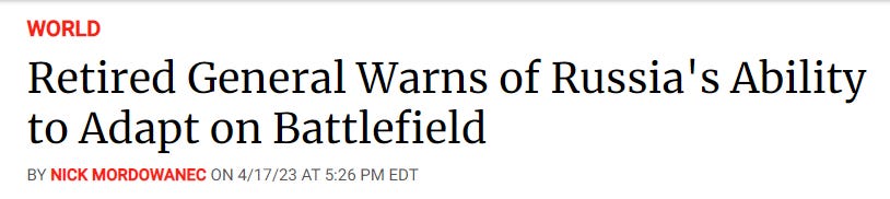 The Russians are not chess Grand Masters. And neither are the Americans. But the Russians have shown the ability to learn and adapt. While my erstwhile West Point classmates might have beens are living in a fantasy land of epic proportions. They are simply believing the Ukrainian intelligence and their own ego.