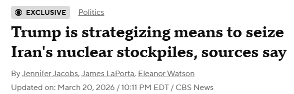 The other final off-ramp plan being discussed by Trump’s administration—according to rumors—is the seizing of Iran’s “enriched materials” via a Delta Force operation of some kind.