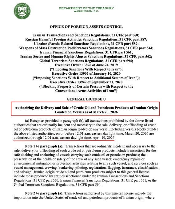 As part of the latest whipsaw action the US Treasury has announced the lifting of sanctions against Iranian oil until April 19th.