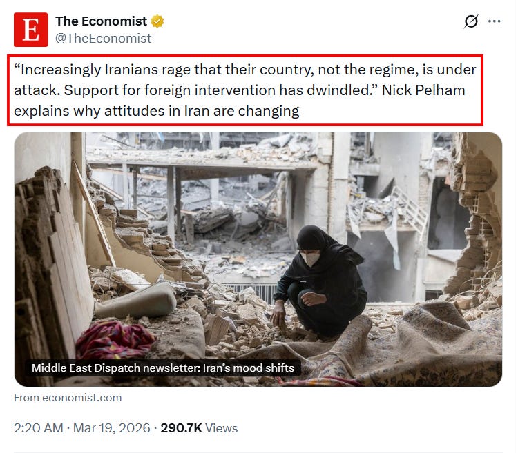Multiple reports have asserted that even the Western-leaning dissident population in Iran has now given up on the West due to the perceived barbarity of the US’s attacks against the Iranian people, rather than solely against the regime—not to mention Trump’s utter callousness in prosecuting it all.
