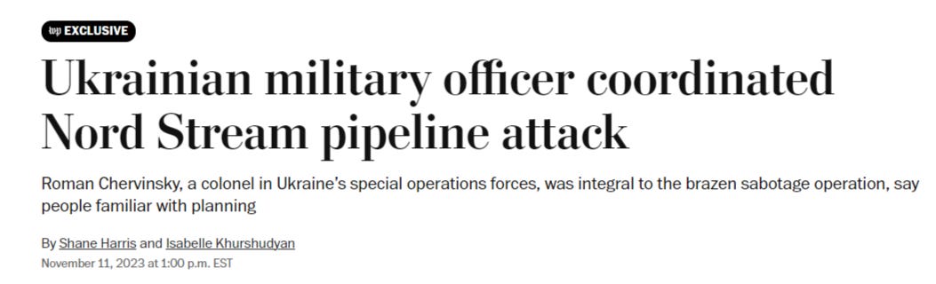 Recall that just yesterday a new ‘bombshell’ article from WaPo tried to sneakily pin the NordStream blame on Zaluzhny, by way of some stooge ‘taking orders’. It went out of its way to state that Zelensky ‘had no knowledge of what was happening.’