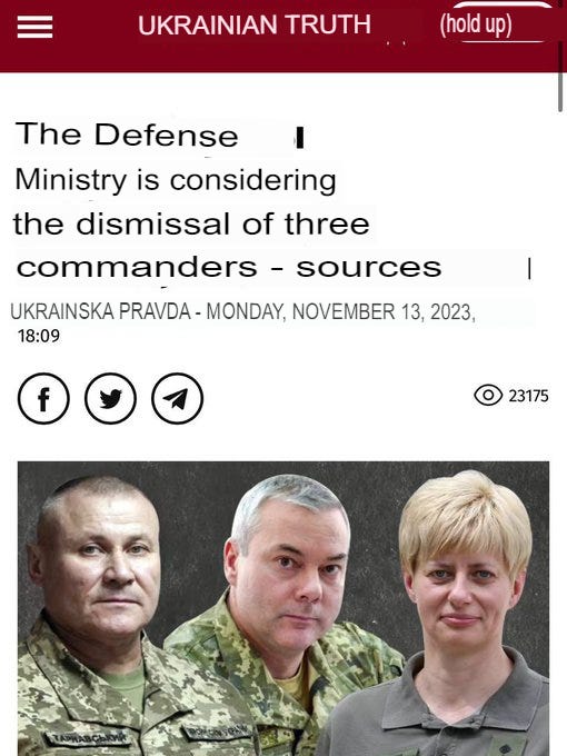 This is speculation, but on simple logic, I can only assume that Zelensky’s brewing initiative to cleanse the ranks is aimed at getting rid of all ‘collaborators’ who may already be party to a growing Zaluzhny-helmed conspiracy to oust him. In short, he may be trying to decapitate all Zaluzhny loyalists to prevent the seizure of power by armed military coup in the near to medium-term future.