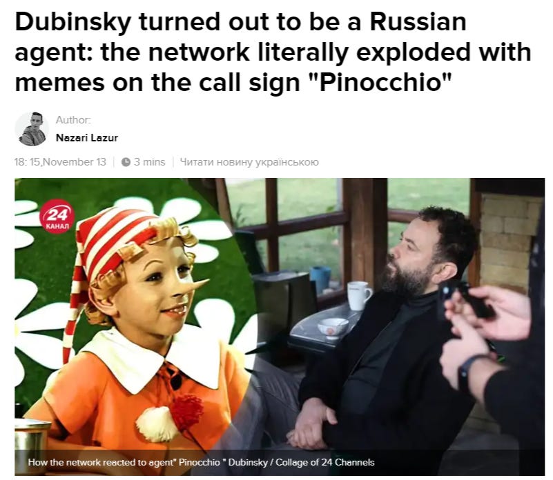 And low and behold, now there’s a treason case against Dubinsky who was raided by the SBU. Mosiychuk shortly released a new video claiming Dubinsky is under house arrest on orders of Yermak, presumably for the statements above, and that he’s under suspicion of being a Russian GRU agent with codename ‘Buratino’.