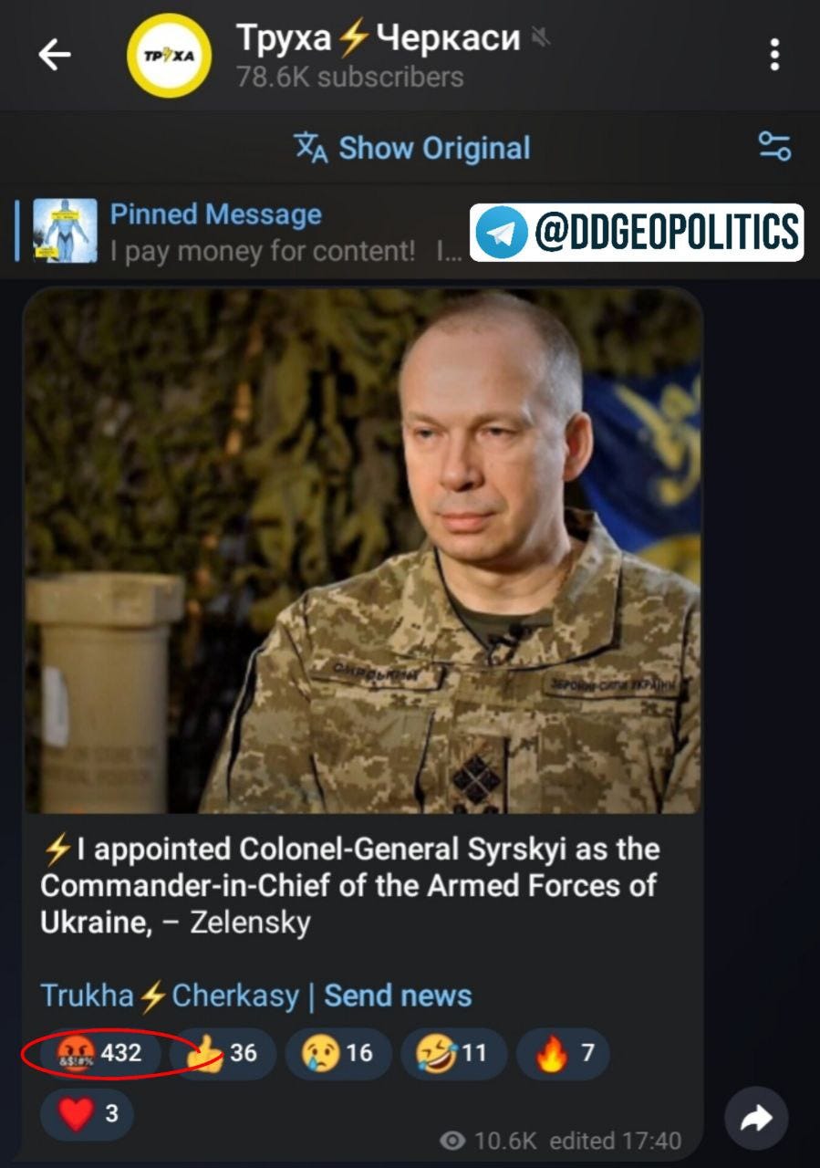 And why are they not taking the news in stride? Many believe that Syrsky is hated by the Ukrainian troops, particularly those on the frontlines.