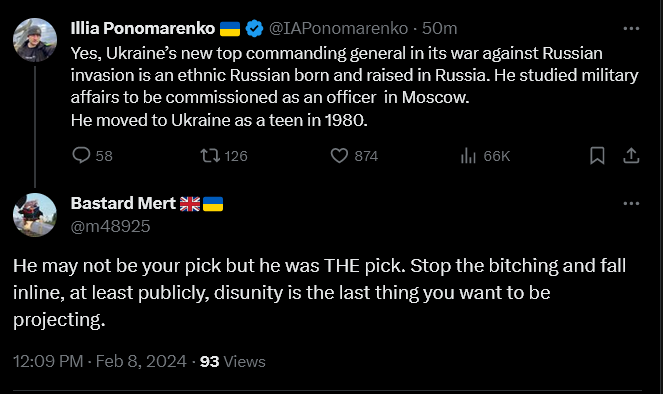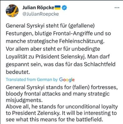 Ask yourself, why would Zelensky appoint a commander that the entire armed forces allegedly hates?