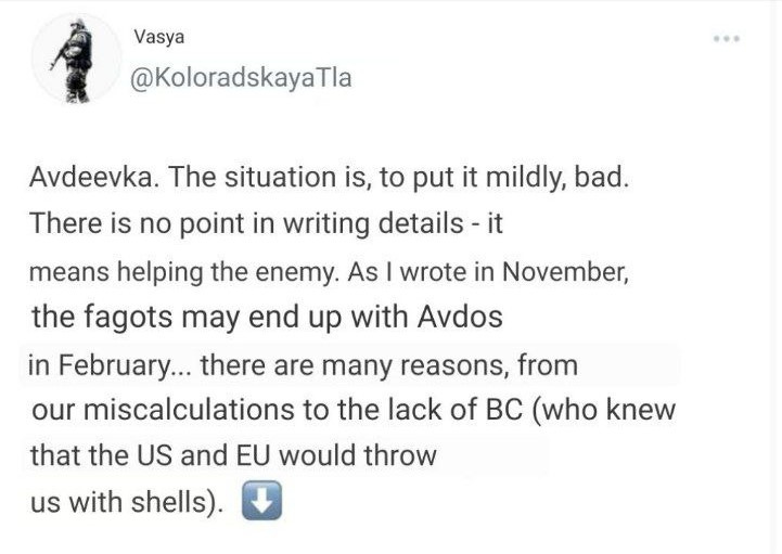 In the meantime, Avdeevka continues to catastrophically collapse. One of the current rumors reported by RezidentUA channel states that Syrsky has already called for immediate reinforcements to try and break the near-blockade in the embattled city: