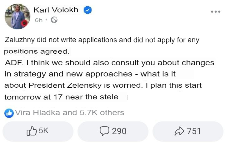 Supporter of Poroshenko, blogger Karl Volokh after Zaluzhny's sacking called on people to go out to Maidan.