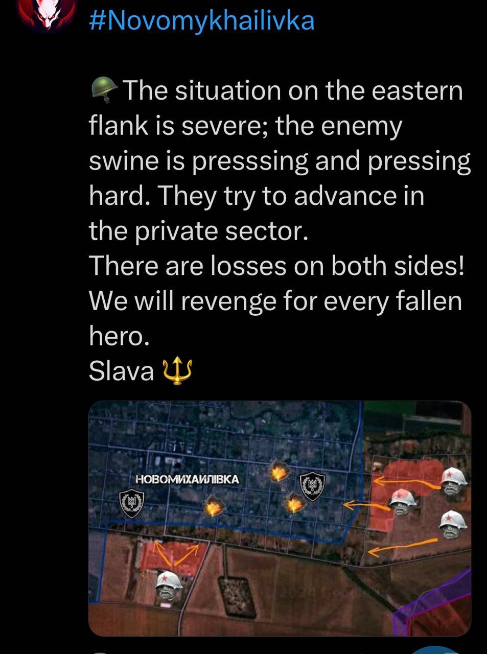 Most notably, heavy action is occurring on Sinkovka and Novomikhailovka where Russia is pushing through Ukrainian lines: