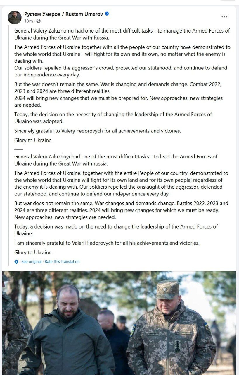 It finally happened, Zelensky has let Zaluzhny go, replacing him with Syrsky: