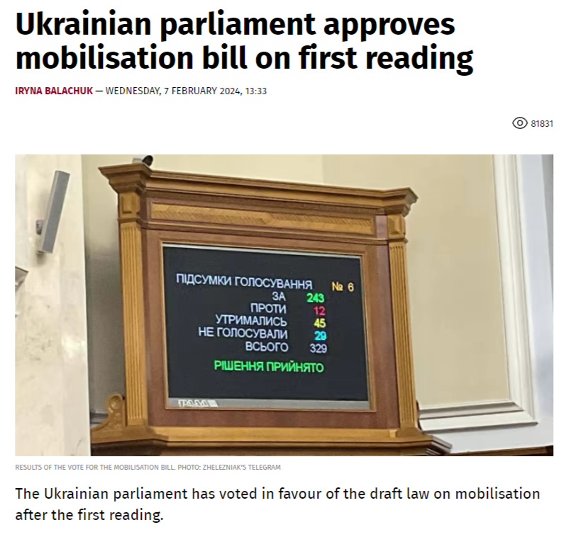 This brings us to the timing. First, just yesterday the Rada approved the draft bill on mobilization: