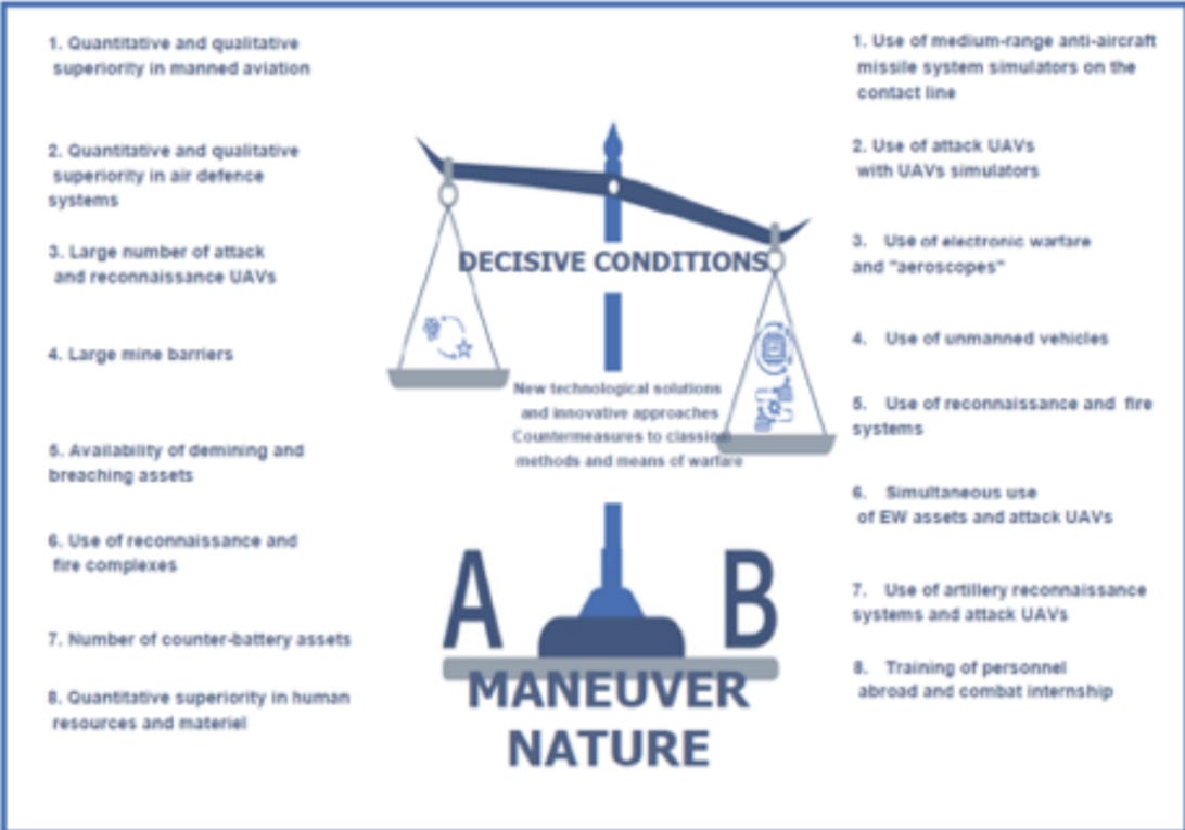 The need to avoid the transition to a positional form of hostilities, such as the "trench war" of 1914-1918, necessitates the search for new and non-trivial approaches to breaking the military parity with the enemy. The main idea of the way out of the current situation can be presented illustratively in the picture.