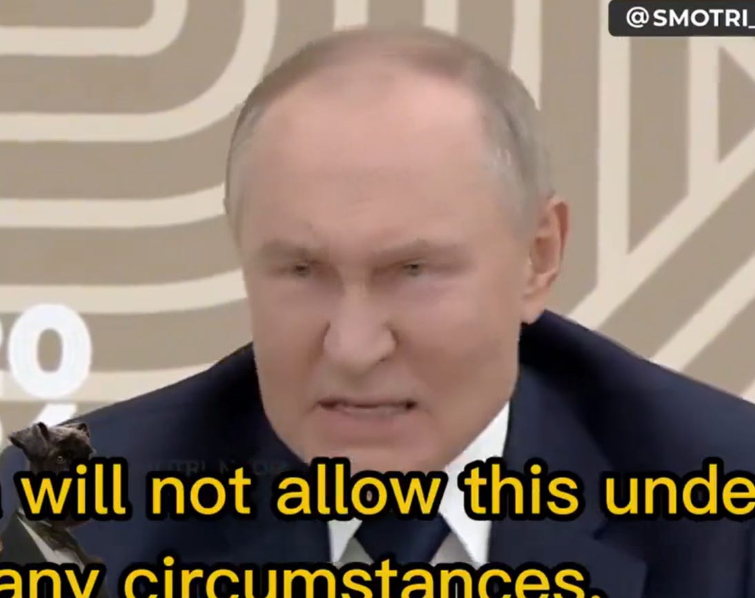 Just look at this frame grab of Putin’s face when he says Ukraine will never be allowed to have nukes—it tells the whole story of Russia’s stance: