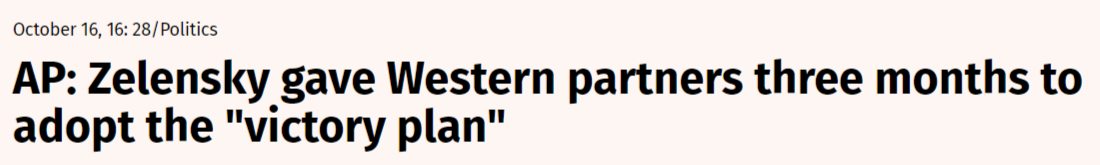 Although this could be a creative extrapolation of Zelensky emphasizing the start of next year, but it does highlight his recent urgency. What can three months bring? For one, in exactly three months the next president of the US is sworn in, and this time limit could be a sort of final marker for Zelensky who seems to be convinced that Trump will sell him down the river.