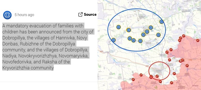 Interestingly, just as this happened, a mandatory emergency evacuation was announced for a batch of cities just to Pokrovsk’s north: