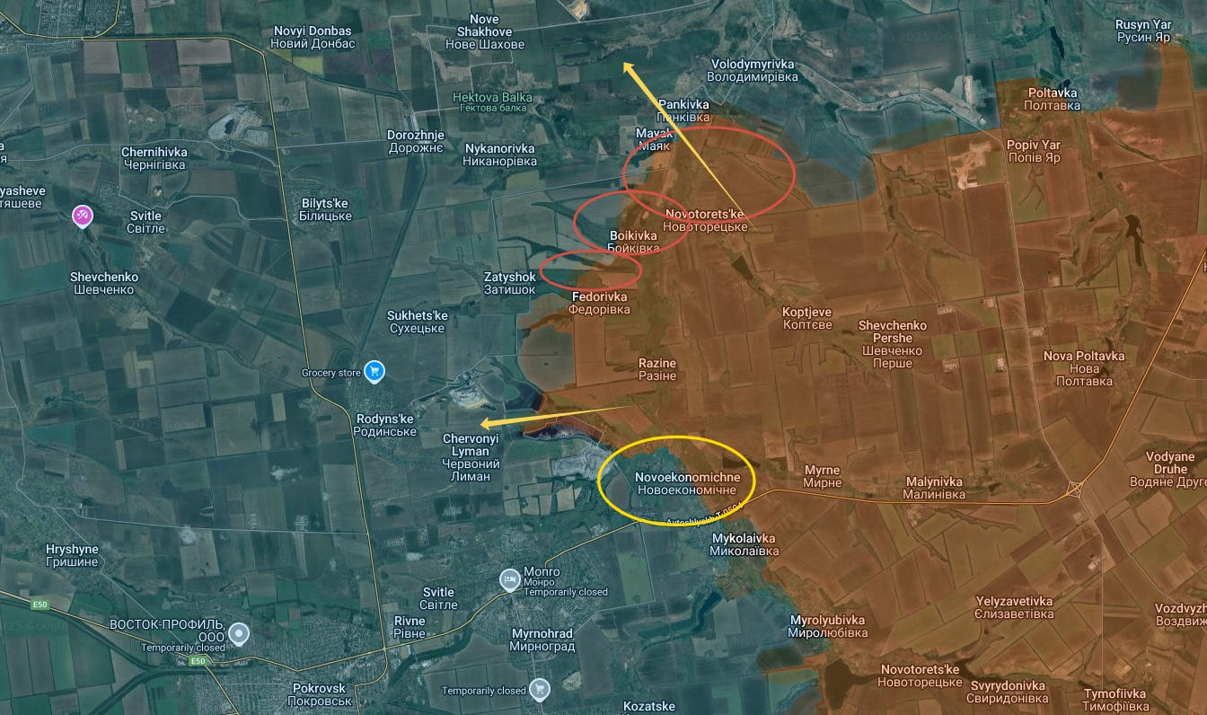 Some sources even now claim Novoekonomichne has been fully captured and Russian forces are entering the outskirts of Mirnograd. Information is particularly volatile at the moment because things are so in flux, so take everything with a grain of salt until real confirmations are made.