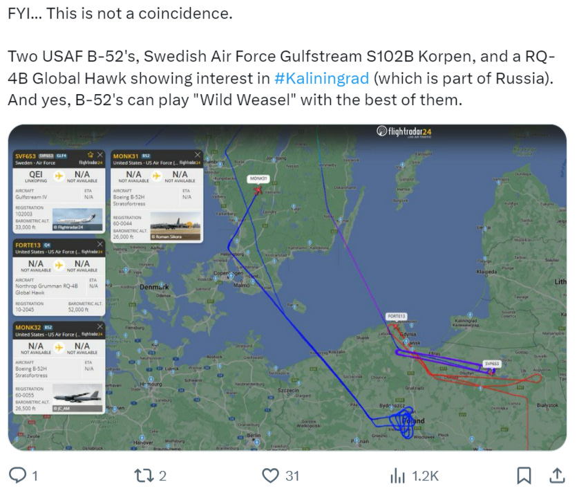 Here’s an animated one showing two Swedish recon flights—the S102B and TP 102C SIGINT planes: